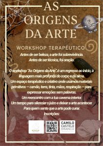 Estás convidado a participar no workshop terapêutico “As Origens da Arte”, uma experiência artística e terapêutica onde o corpo, a emoção e o gesto se tornam o teu primeiro traço. Uma oportunidade para te expressares de forma livre, intuitiva e sem julgamentos — antes do desenho, existe a tua verdade interior.